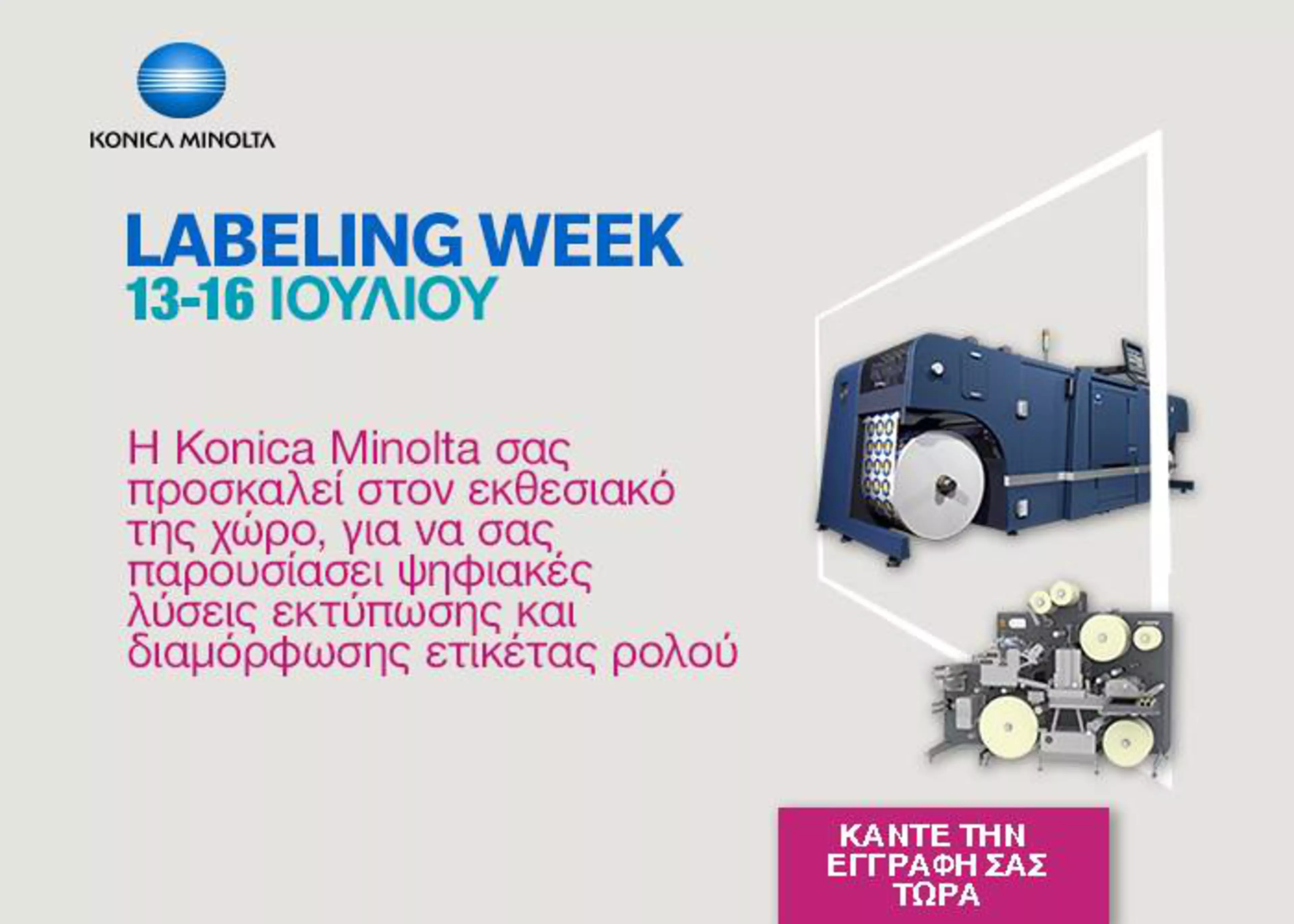 Η Konica Minolta διοργανώνει και σας προσκαλεί στο Labeling week στον εκθεσιακό της χώρο DIS. Μία εβδομάδα αφιερωμένη στην βιομηχανία της ετικέτας.
